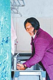 通過參加學(xué)習(xí)班,不少村民養(yǎng)成了好習(xí)慣。圖為9月13日,卡娘村一位村民正在洗手。  四川在線記者楊樹攝