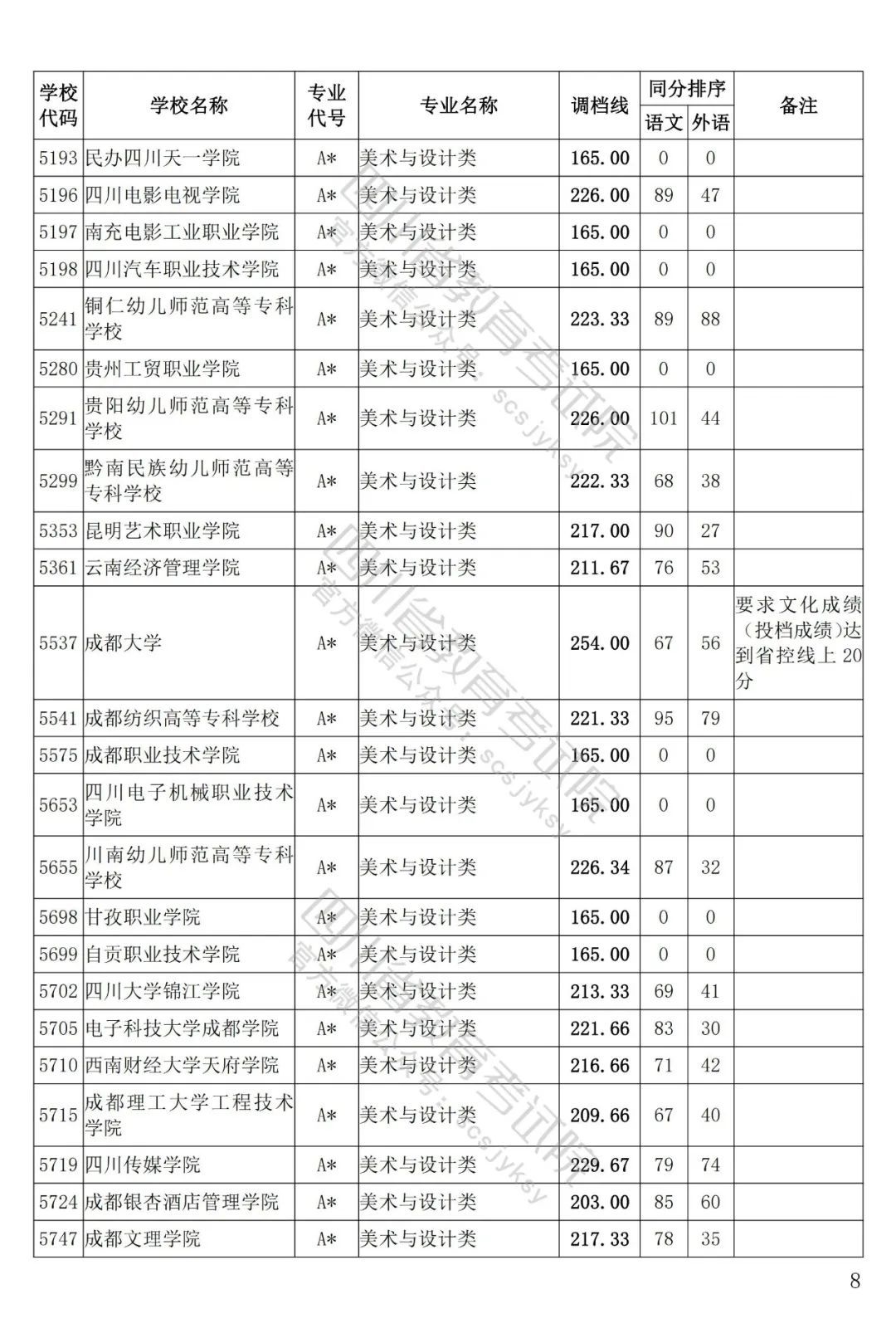 四川省2022年普通高等學(xué)校藝術(shù)體育類專科批已于8月5日投檔錄取。為方便廣大考生和家長及時(shí)了解錄取信息,省教育考試院按非編導(dǎo)類和編導(dǎo)類發(fā)布了藝體類分校、分專業(yè)類調(diào)檔線。