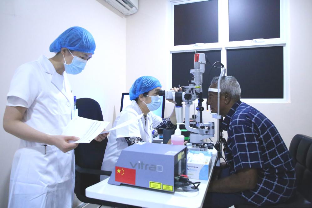 ??69歲的艾哈邁德·卡洛是中國醫(yī)療隊“光明行”活動的獲益者。兩個兒子曾帶著患有眼疾多年的老人輾轉(zhuǎn)多家醫(yī)院,均因手術(shù)難度大而無法得到有效治療。2023年,中國醫(yī)療隊醫(yī)生經(jīng)過充分評估后,給老人成功實施了手術(shù)。術(shù)后揭開眼罩時,老人家激動地說:“醫(yī)生,我可以看到你的胸牌了,謝謝你!”老人的兒子也在社交媒體發(fā)帖說:“真誠感謝中國醫(yī)生。”除了治病,中方還著力培訓(xùn)當(dāng)?shù)蒯t(yī)務(wù)人員,力爭為當(dāng)?shù)卮蛟煲恢А皫Р蛔摺钡难劭茖<谊犖椤?/span>