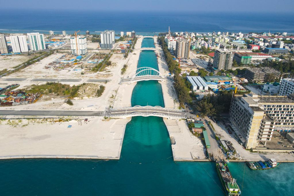 ??大橋所連接的胡魯馬累,是建設(shè)在填海島嶼上的新興城市,寄托著馬爾代夫人民對發(fā)展的美好期待。如今,一座座嶄新的公寓樓矗立在海岸旁,開放式小區(qū)整潔漂亮。由中國機(jī)械設(shè)備工程股份有限公司承建的約4000套公寓,幫助解決當(dāng)?shù)刈》繂栴}。不少當(dāng)?shù)鼐用癜堰@些小區(qū)稱作“中國城”。