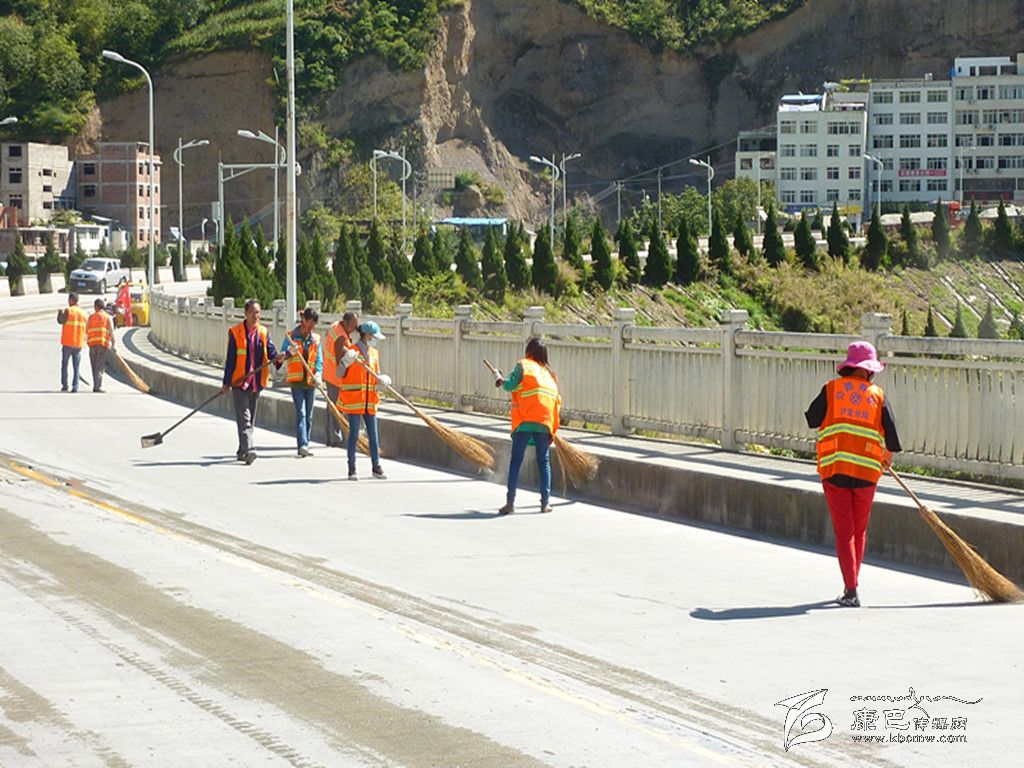 國(guó)慶黃金周期間,在瀘定公路分局管養(yǎng)的每一條路線,隨處可見(jiàn)養(yǎng)路工人忙碌的身影:整修路容路貌、清除垃圾、道路巡查、疏通車輛……一個(gè)個(gè)身著桔紅色標(biāo)志服的養(yǎng)路職工構(gòu)成一道道亮麗的風(fēng)景——這是養(yǎng)路工人獻(xiàn)給偉大祖國(guó)的禮贊。圖為瀘定養(yǎng)護(hù)管理站的一線養(yǎng)護(hù)職工正在國(guó)道318線康巴大橋處進(jìn)行道路保潔工作。(賀淑明 攝影報(bào)道)