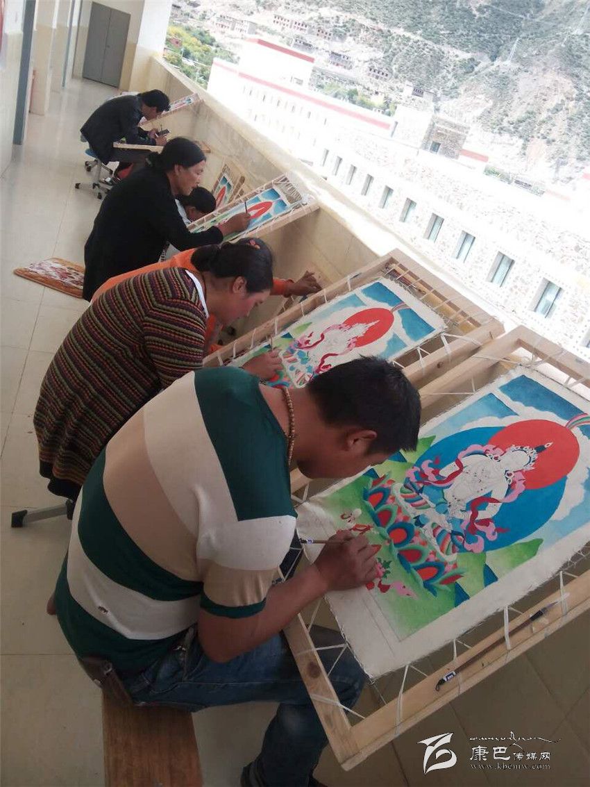 學(xué)員們正在專心致志地學(xué)習(xí)唐卡繪畫技法。