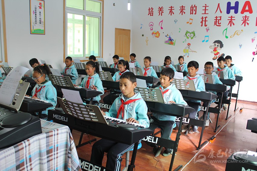 在甘孜縣城關第一完全小學的教室里,音樂教師正在教授孩子們識別五線譜,孩子們用稚嫩的雙手在電子琴鍵盤上彈奏著音樂的同時,嘴里還不斷的唱著“哆唻咪發(fā)嗦”。放學時,孩子們還沉浸在音樂的余韻中,興奮地給前來接送上課的父母們講述著課堂上的趣事。學生家長翁登不勝唏噓:“大娃娃讀一完小的時候,只有語文數(shù)學和藏文可以學,其他的課沒有專門的老師教,現(xiàn)在小女兒好安逸,還有專門的音樂老師教他們唱歌,現(xiàn)在的老師真的很厲害!”