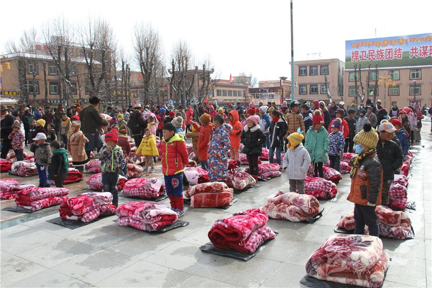 本網(wǎng)訊(葉強(qiáng)平 文/圖)元旦前夕,理塘縣關(guān)心下一代工作委員會(huì)在縣城格薩爾廣場(chǎng)舉行了“老少牽手·溫暖童心”暖冬行動(dòng),100名貧困學(xué)生領(lǐng)到爺爺、奶奶們捐贈(zèng)的“愛心”毛毯。