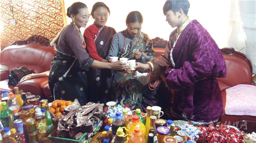 根秋卓瑪一家是俄多瑪鄉(xiāng)的村民,初一一大早,根秋卓瑪就穿上節(jié)日的盛裝。“今天我們要把年貨擺放出來,等親戚朋友祈?;貋恚覀円患揖蜁谝黄?,拉著家常、吃著美食、唱著山歌,高高興興歡度藏歷新年?!备镒楷斦f。