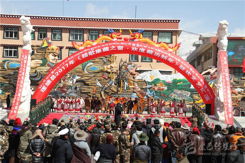 瑞雪初霽,踏歌迎春,2月28日,藏歷火雞新年初二,理塘縣格薩爾廣場(chǎng)上隆重舉行2017年“踏歌康藏之窗·歡度藏歷新年”文藝匯演,本次活動(dòng)由縣委、縣人民政府主辦,縣委宣傳部、武警部隊(duì)、甲洼民間藏戲藝術(shù)團(tuán)等單位承辦。