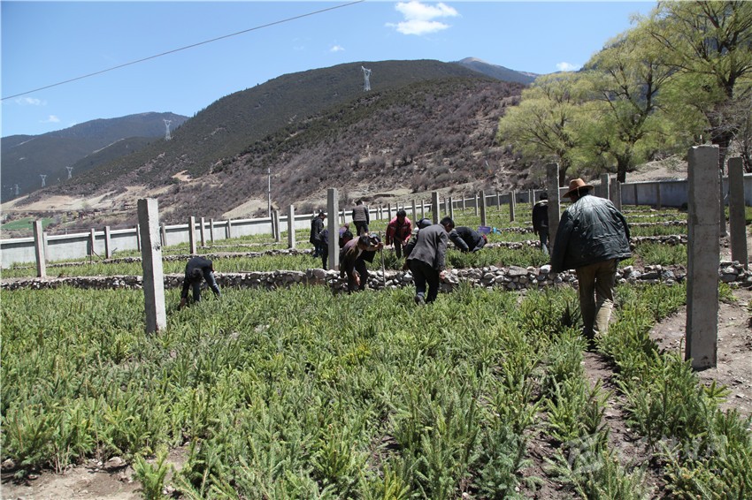 415是星期六,但巴塘縣松多鄉(xiāng)的干部們卻沒有閑著。在該鄉(xiāng)的下莫西村,40多位村民正聚集在剛剛完成幼苗栽植的苗圃內(nèi),仔細(xì)聆聽著鄉(xiāng)黨委書記扎西澤仁的講解?!耙⒁鉂菜?,保持土壤濕度,盡快為苗圃安裝遮陽(yáng)網(wǎng),管理人員要加強(qiáng)管理,不得脫崗離崗……。”扎西澤仁講得仔細(xì),村民們聽得認(rèn)真。正在苗圃內(nèi)忙碌的下莫西村黨支部書記安珠澤仁告訴記者,今年來(lái),當(dāng)?shù)剜l(xiāng)干部把辦公室搬到了田邊地角,現(xiàn)場(chǎng)為村民們解決遇到的困難和問題,受到了廣大村民的歡迎。