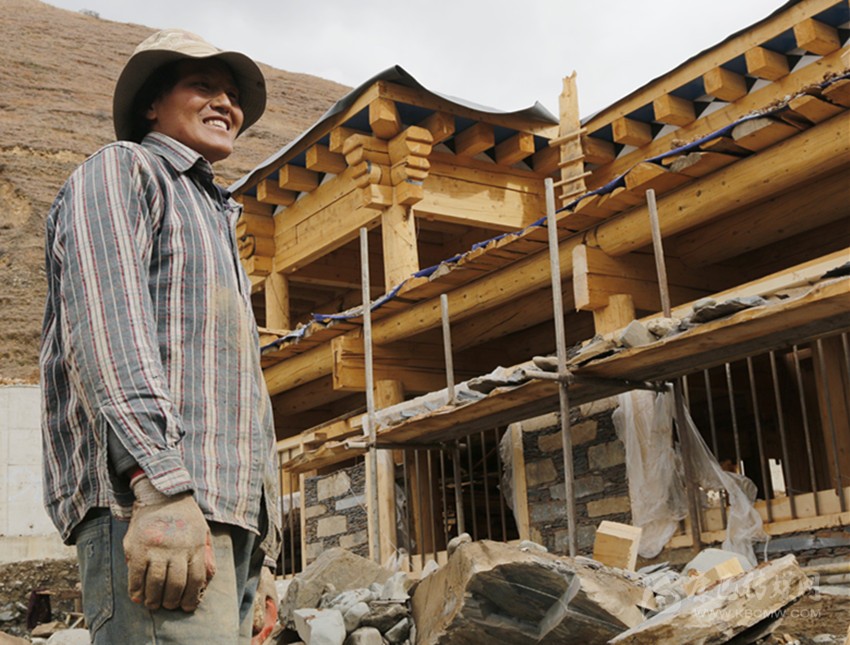 魯都村村民切真一大早便騎著摩托車來(lái)到縣城邊上的安置點(diǎn),賣力的為已經(jīng)“封頂”的新房“添磚加瓦”。