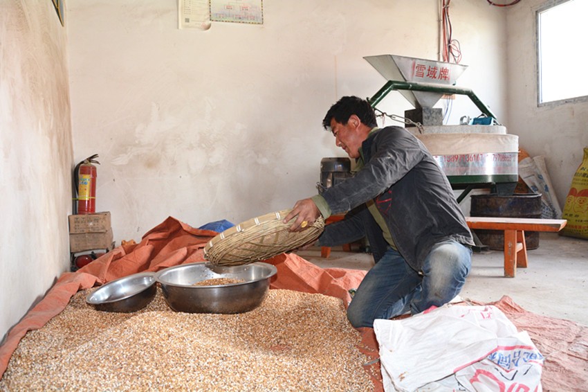 事實(shí)上,小作坊的準(zhǔn)確名稱是仁果下村電磨坊合作社,屬于村里的集體經(jīng)濟(jì),廠房的建設(shè)、機(jī)器的購買都來源于扶貧專項資金。建成后,合作社提供崗位,讓村里的貧困戶來操作運(yùn)營。于是,洛桑降措成為了這里的“主人”。