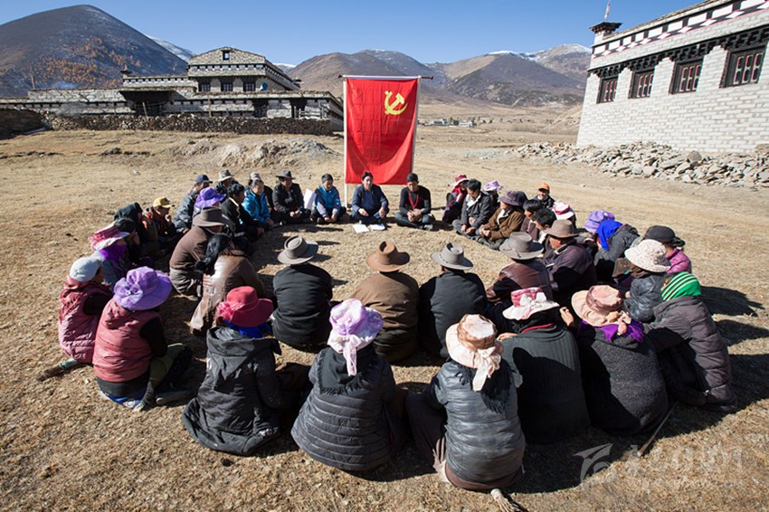 會議開始前,全體與會黨員在村民代表見證下重溫入黨誓詞。隨后,該鄉(xiāng)黨委書記布初用藏漢雙語現(xiàn)場傳達(dá)了黨的十九大主要精神,并重點(diǎn)闡述了黨的十九大關(guān)于鄉(xiāng)村振興戰(zhàn)略和民族團(tuán)結(jié)和諧等內(nèi)容。最后,全體黨員群眾圍繞黨的十九大報(bào)告進(jìn)行了交流發(fā)言。