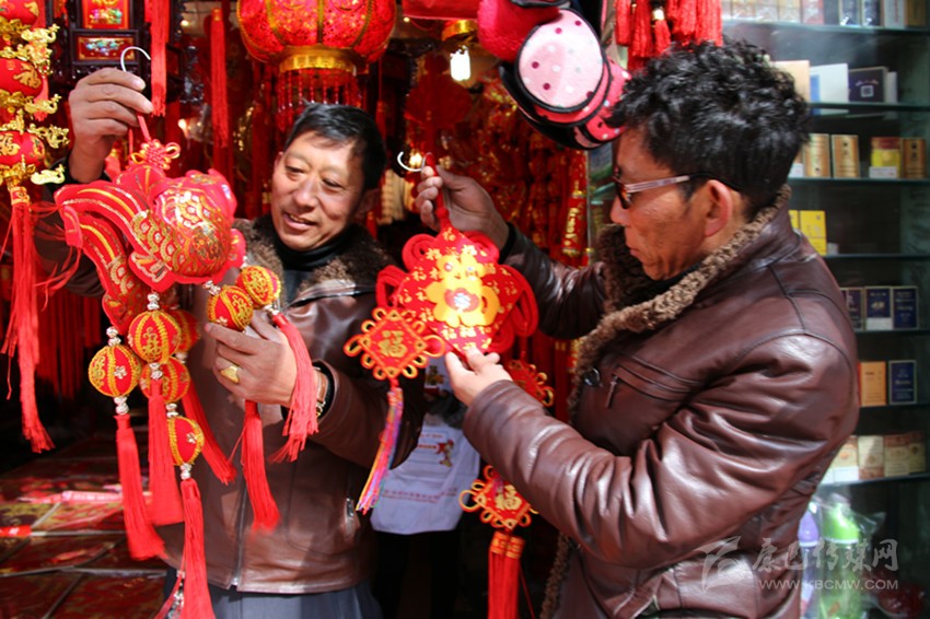 洛讓邊說(shuō)邊看著單子,“啊”了一聲,說(shuō):“差點(diǎn)忘了老婆大人交代的大事。”原來(lái),臨走時(shí),洛讓老婆特意叮囑他要買(mǎi)春聯(lián)、中國(guó)結(jié)和燈籠。好在側(cè)旁的郭達(dá)橋內(nèi)江小百貨店就有賣,買(mǎi)好之后,洛讓又特意挑選了一個(gè)金線編織的魚(yú)掛飾,“這個(gè)好,這個(gè)好,年年有余。”滿臉充滿憧憬。