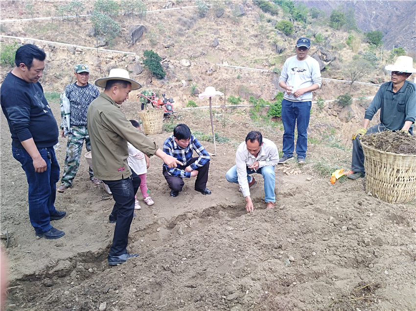 “以前我們種植傳統(tǒng)作物每年每畝收入不到1000元,現(xiàn)在種植茶樹后每畝春茶至少收入2500元?!闭f起產(chǎn)業(yè)發(fā)展帶來的好處,魁多鄉(xiāng)村民王扎西喜悅之情溢于言表。圖為技術(shù)人員現(xiàn)場指導(dǎo)農(nóng)民種植茶樹。