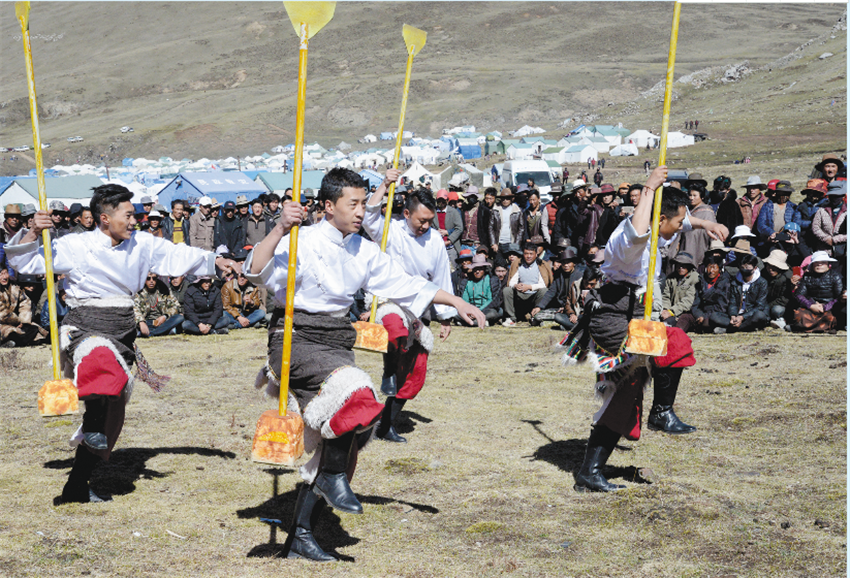 圖為理塘仙鶴藝術(shù)團表演《打墻舞》。