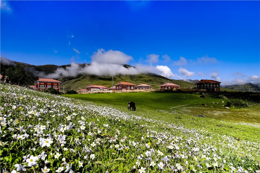 “鄉(xiāng)干部安排我負責(zé)管理度假村,我當(dāng)即承諾,度假村是我們一手培育起來的產(chǎn)業(yè),就像我們的孩子,我們要精心呵護它健康成長。我們修建了特色住宿,完成生態(tài)廁所、停車場等配套基礎(chǔ)設(shè)施,拓展騎馬、射箭、土特產(chǎn)銷售等業(yè)務(wù),同時借助幫扶單位樂山職業(yè)技術(shù)學(xué)院的力量,有信心把度假村打造成一流的牧旅融合休閑旅游目的地,宗塔草原這片七色花海將會為群帶來七彩生活?!贝迕竦莱隽藢Χ燃俅宓钠谕?。