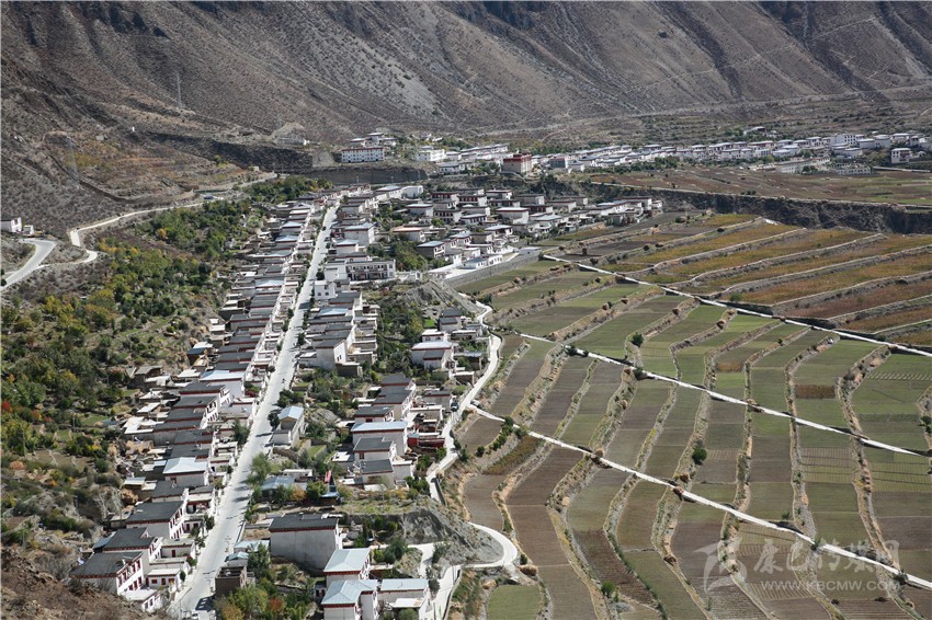 作為處于高山峽谷間的得榮縣鄉(xiāng)村,村民大多生活在懸崖峭壁上,或地質(zhì)災(zāi)害嚴(yán)重的地區(qū),生存條件極差,為了徹底斬除窮根,縣委、縣政府把開(kāi)發(fā)的目光投向了地勢(shì)相對(duì)平坦的因都?jí)巍?1月10日,記者再訪因都?jí)巍3醵囊蚨級(jí)侮?yáng)光燦爛,溫暖如春。一棟棟民居、一層層梯田橫臥在青山綠水間,蔚為壯觀。農(nóng)閑季節(jié),村民們愜意地坐在自家庭院的亭子里,喝著酥油茶、品嘗著藏橘、梨子、蘋(píng)果和核桃。村道兩旁的藏橘碩果滿枝頭,寬敞的街道、靚麗的民居,一幅壯美的富春山居圖在金沙江畔徐徐展開(kāi)。