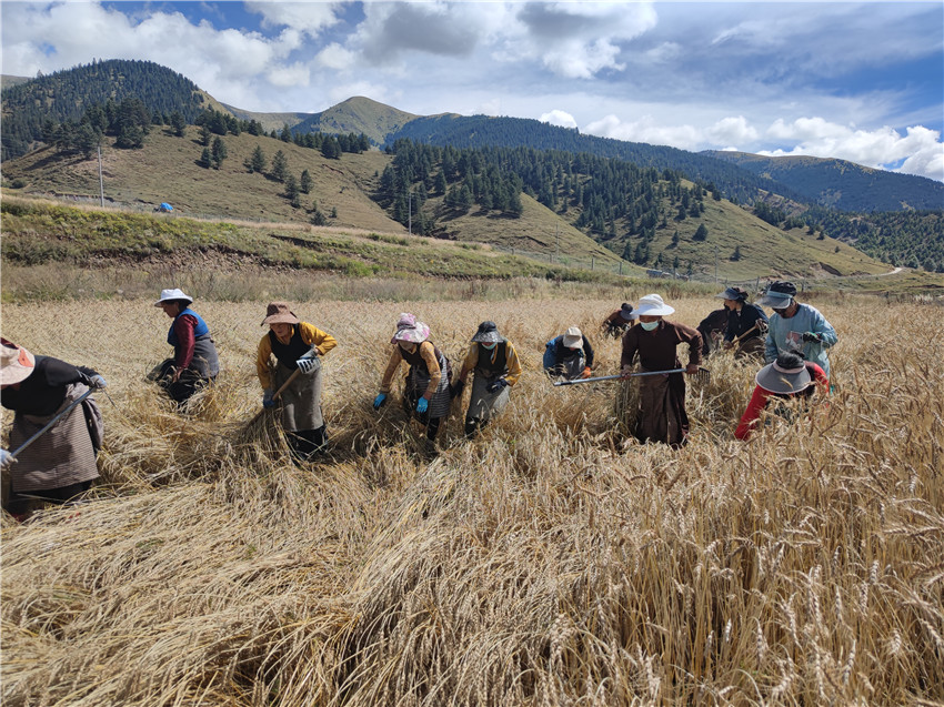 “增德村距鄉(xiāng)衛(wèi)生院差不多有6公里左右,衛(wèi)生院醫(yī)護(hù)人員每天到秋收現(xiàn)場(chǎng)對(duì)群眾進(jìn)行核酸檢測(cè),解決了秋收期間群眾兩頭跑的實(shí)際問(wèn)題,現(xiàn)在鄉(xiāng)干部又來(lái)幫助我們秋收,今年豐收應(yīng)該沒(méi)有問(wèn)題?!痹麓妩h支部書(shū)記格桑甲措說(shuō)。
