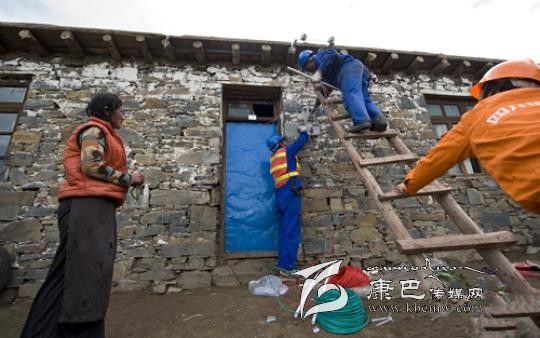 石渠“查加部落”的牧民加洛望著家門口正在安裝的第一只電表,心里充滿了期待。 陳紅梅 攝