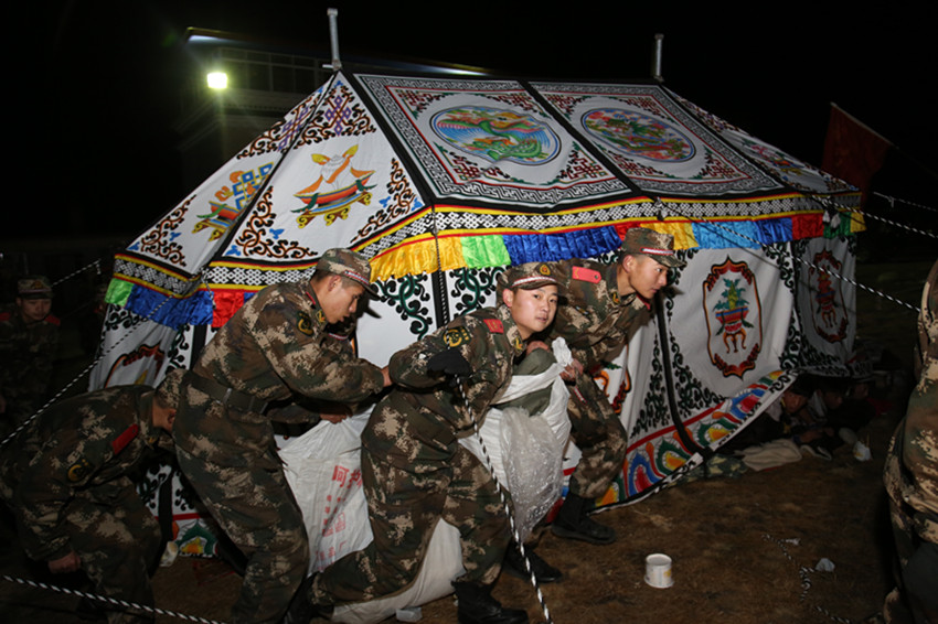 “快!快!搭建帳篷,抓緊轉(zhuǎn)移受災(zāi)群眾。”、“小心!小心!不要慌,慢慢來(lái)。”……救援現(xiàn)場(chǎng),參戰(zhàn)官兵爭(zhēng)分奪秒搜救人員,轉(zhuǎn)移安置受災(zāi)群眾,趁著夜色熱火朝天地搭起救災(zāi)帳篷。大家齊心協(xié)力,有的搬運(yùn)帳篷,有的組裝帳篷部件,有的拉緊繩子,有的打地樁,有的支桿撐桿……經(jīng)過(guò)一線官兵連續(xù)奮戰(zhàn),共營(yíng)救11名輕傷群眾,轉(zhuǎn)移群眾200余人,轉(zhuǎn)運(yùn)棉被1040套,搭建帳篷195頂,發(fā)放礦泉水、方便面、壓縮餅干、罐桶等食品百余件,受災(zāi)較重的木雅祖慶小學(xué)近1828名師生已得到妥善安置,支隊(duì)派出的醫(yī)療小分隊(duì)已展開(kāi)醫(yī)療救助和衛(wèi)生消毒等工作。