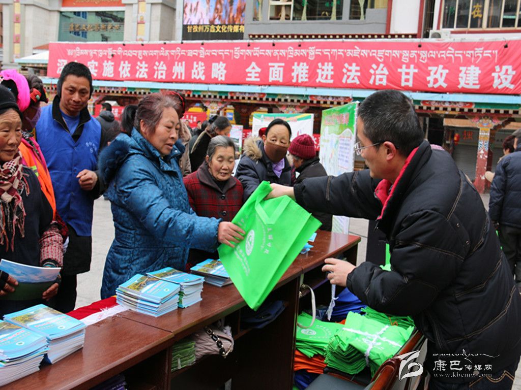 ●3月11日,由州環(huán)境保護局牽頭,州農業(yè)畜牧局、州旅游局、州發(fā)改委、州林業(yè)局、州國土資源局、州文體廣局以及康定縣環(huán)境保護局聯(lián)合舉辦的 “3·11”生態(tài)日宣傳活動在情歌廣場上舉行。州政府副州長杜德清來到宣傳現場,和工作人員一同為前來咨詢的市民發(fā)放資料。