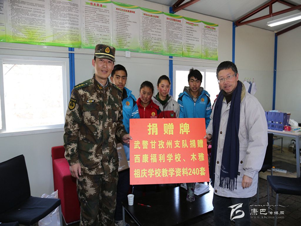 在康定縣西康福利學(xué)校、木雅祖慶學(xué)校臨時活動板房教學(xué)區(qū)校長辦公室內(nèi),該支隊向兩所學(xué)校捐贈了240套教學(xué)資料,并為5名結(jié)對特困學(xué)生贈送了保暖衣。據(jù)該支隊副政委朱平孝介紹,康定“11·22”地震發(fā)生后,他們了解到兩所學(xué)校的學(xué)生全在活動板房上課后,立即與學(xué)校取得聯(lián)系,結(jié)合實際給他們訂購了240套教學(xué)資料,用于充實學(xué)校教學(xué)。并結(jié)合部隊擔(dān)負(fù)任務(wù)和學(xué)校教學(xué)實際,將持續(xù)與學(xué)校開展愛心幫扶、國防教育、支教助學(xué)等共建共育活動。