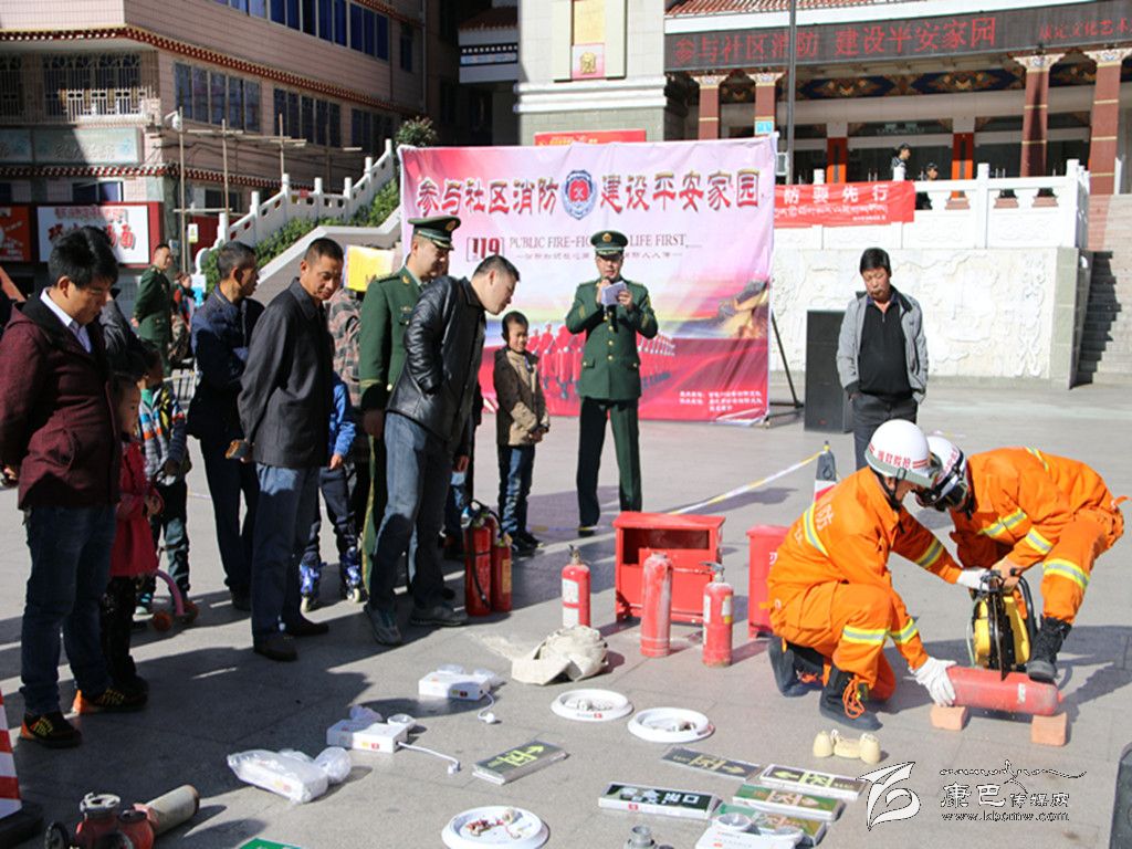 在“119”到來之際,為提高群眾消防安全意識,積極查找身邊火災隱患,州公安消防支隊于8日在康定情歌廣場開展“參與社區(qū)消防、建設(shè)平安家園”消防宣傳主題活動。活動現(xiàn)場除展示了消防器材、消防車輛及宣傳品外,還開展了油盆滅火、銷毀過期消防產(chǎn)品等活動。為提高群眾參與度,本次宣傳活動還采取消防知識有獎趣味問答、關(guān)注微信抽獎等方式進行互動。圖為消防官兵向向群眾展示消防器材。    (記者 楊杰 攝影報道)