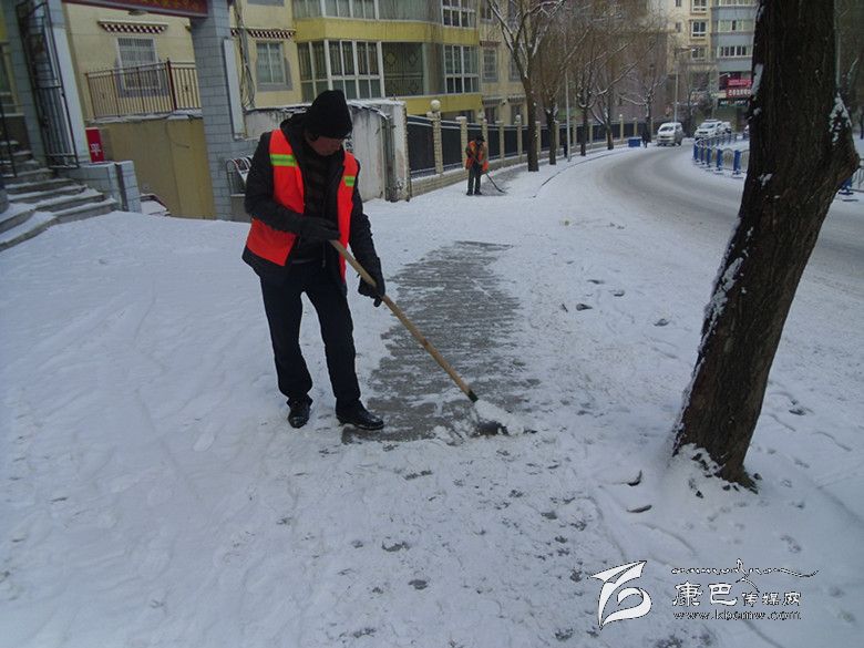 領(lǐng)導(dǎo)帶動示范,行動彰顯榜樣的力量,公司領(lǐng)導(dǎo)與環(huán)衛(wèi)工人在寒風(fēng)中并肩作戰(zhàn),環(huán)衛(wèi)工人心里激情蕩漾??吹江h(huán)衛(wèi)工人十分辛苦,市民也常主動參與除積雪暗冰活動。