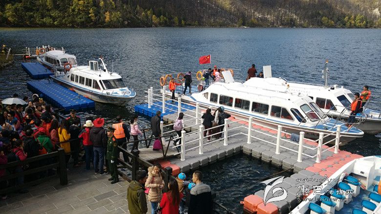 “十一”黃金周期間,康定市木格措景區(qū),游客正在有序排隊等待乘船。