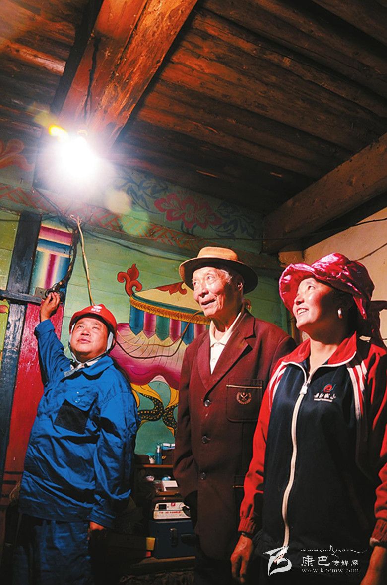6月30日,丹巴縣丹東鄉(xiāng)的居民在家中高興地看著亮起的燈光。