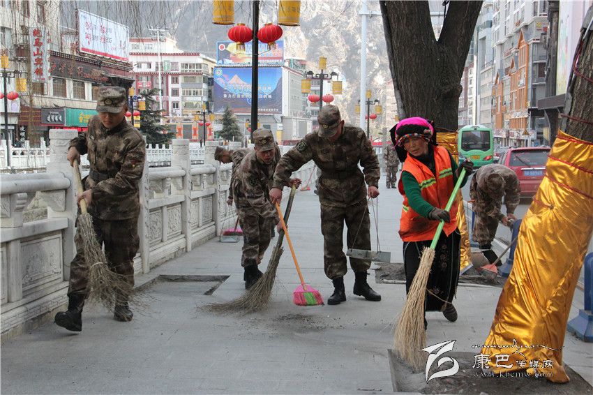 情歌廣場,官兵們鏟除冰雪,除去塵土垃圾,留下一片潔凈美好;福利院里,官兵們?yōu)槔先藵{洗衣物、打掃衛(wèi)生、理發(fā)洗頭,忙得不亦樂乎。幾位女兵還專門為老人們送去了自編自演的節(jié)目,這個“一家人”的溫馨聚會,讓老人們倍感高興、倍感溫暖。而此刻,遠(yuǎn)在道孚的分區(qū)部隊(duì)某營官兵的愛民助民活動也進(jìn)行的如火如荼。