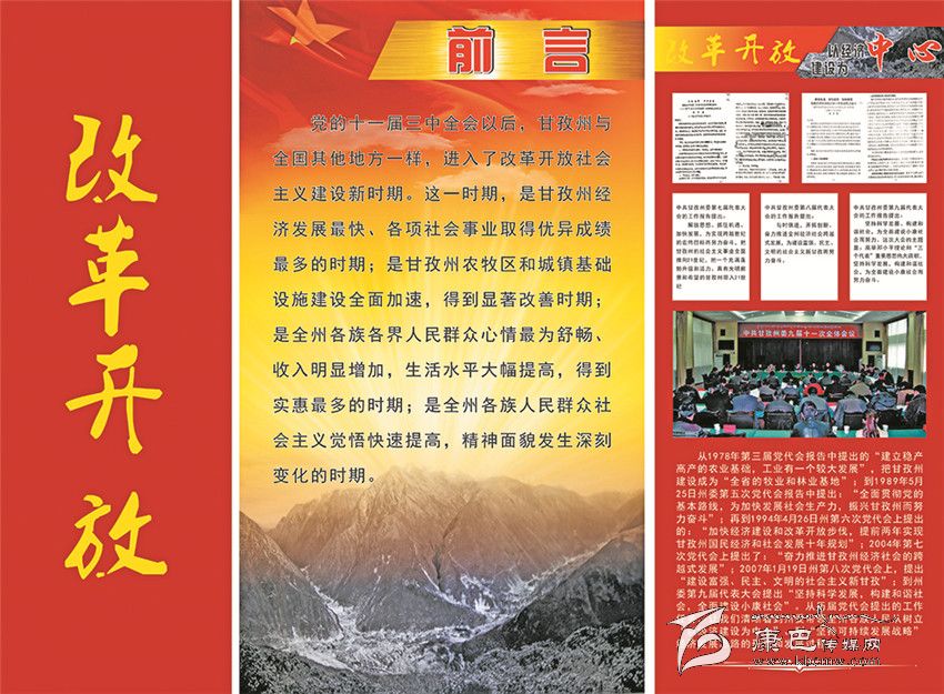 《甘孜州檔案館愛國主義教育基地》的整個展覽分為四大板塊。第一部分命名為“自治政權的建立”,向參觀者介紹了甘孜藏族自治州誕生的歷史過程;第二部分是“民主改革運動”,把人們帶回了那段不能忘記的烽火歲月;第三部分是“社會主義建設”,深情地回顧了在建設社會主義事業(yè)中我州所取得的不平凡的成就;第四部分是“改革開放”,讓人們重溫了在改革開放的大潮中所經歷的那些充滿激情的經歷。