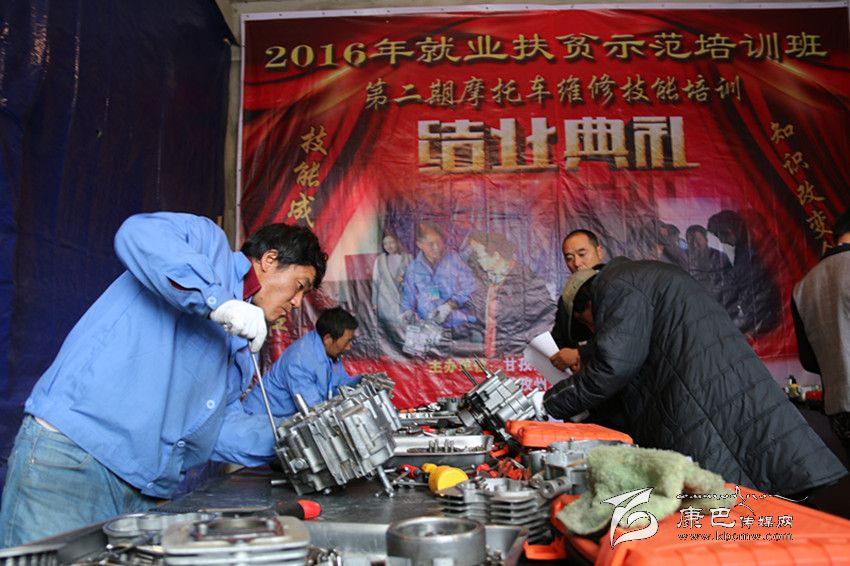 據(jù)了解,為深入貫徹落實州委、州政府精準扶貧工作精神,高標準、高質量完成就業(yè)扶貧技能培訓和就業(yè)促進專項計劃,州人力資源和社會保障局抓緊安排部署,開展了系列就業(yè)扶貧技能培訓示范活動。2016年10月10日至29日,第二期就業(yè)扶貧技能培訓示范班——摩托車維修技能培訓在康定開展,來自16個縣的45名建檔立卡貧困戶勞動力參加培訓,為解決學員們的后顧之憂,學員們的往返交通費、住宿費、伙食費、實訓工裝費、資料費全免。今天是考核和技能比賽時間,學員們正在輪流進行發(fā)動機的拆裝,考核合格的學員將獲得初級職業(yè)資格證書。