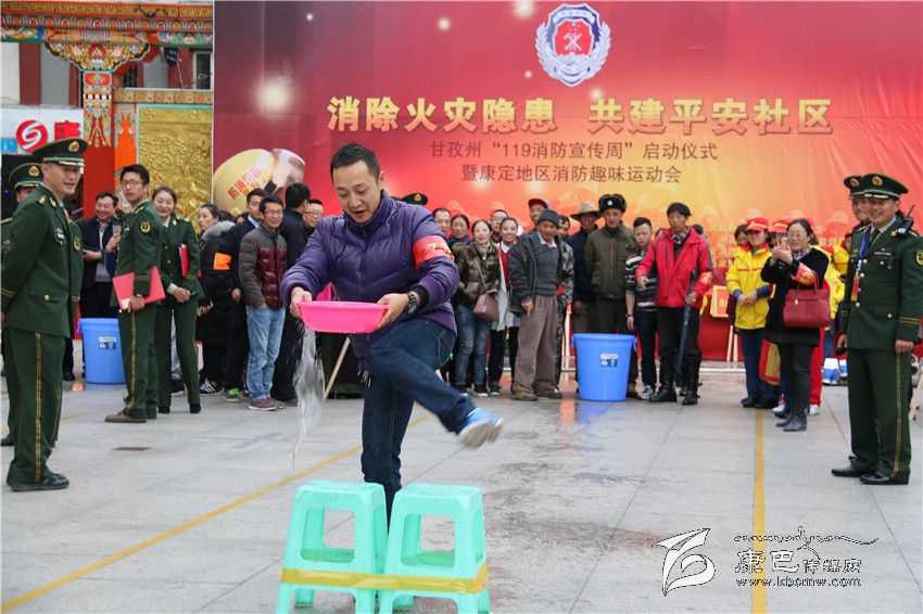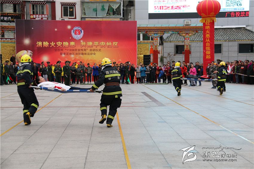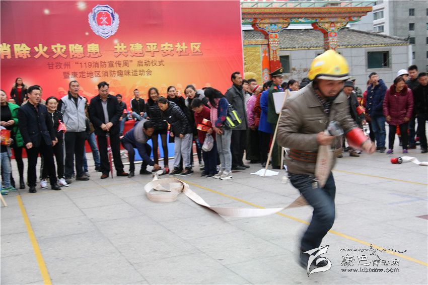 消防趣味運動會是本次活動的重頭戲,在情歌廣場上來自康定市光明社區(qū)、水井子社區(qū)、公主橋社區(qū)、子耳社區(qū)等8支代表隊,在州公安消防支隊隊員的演示下,進(jìn)行了擔(dān)架救人、障礙運水、水帶接力和模擬火災(zāi)撲救四個項目的比拚。競賽中,參賽隊員各施技能,奮勇拼搏,不僅熟悉了消防知識,還增加了各社區(qū)的感情,比賽在歡快中結(jié)束,并評出了名次。