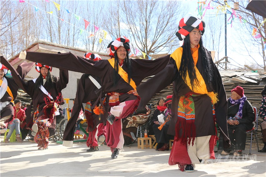 演出現(xiàn)場,80歲的澤則瑪高興地說:“我們一直都是從電視上觀看全國各地舉辦的新春文藝表演,沒想到今年春節(jié)我們小小的一個(gè)村子也有了自己的舞臺(tái)?!贝竽瓿跻唬迕駛冊缭绯赃^飯,穿上表演服在村級文化活動(dòng)室等待10點(diǎn)鐘正式演出,活動(dòng)室外的觀眾們正翹首以盼。伴隨著歡快的歌舞聲響起演員們翩翩起舞,為村子增添了節(jié)日的歡樂。