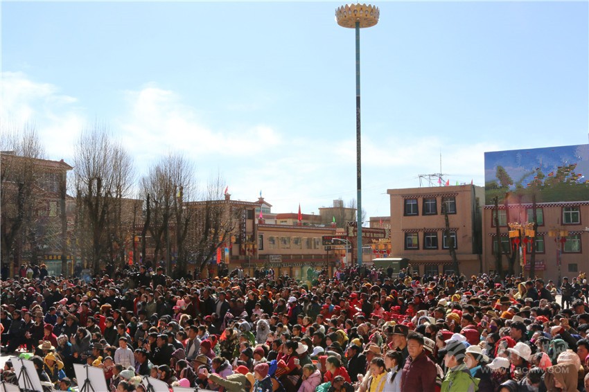 本網(wǎng)訊(余應(yīng)瓊 肖開心 /圖)131日,大年初四,甘孜縣中心體育場襟飄帶舞,人山人海,該縣2017年迎新春民間文藝演出在這里熱鬧舉行,演出吸引了各族干部群眾一萬余人觀看。