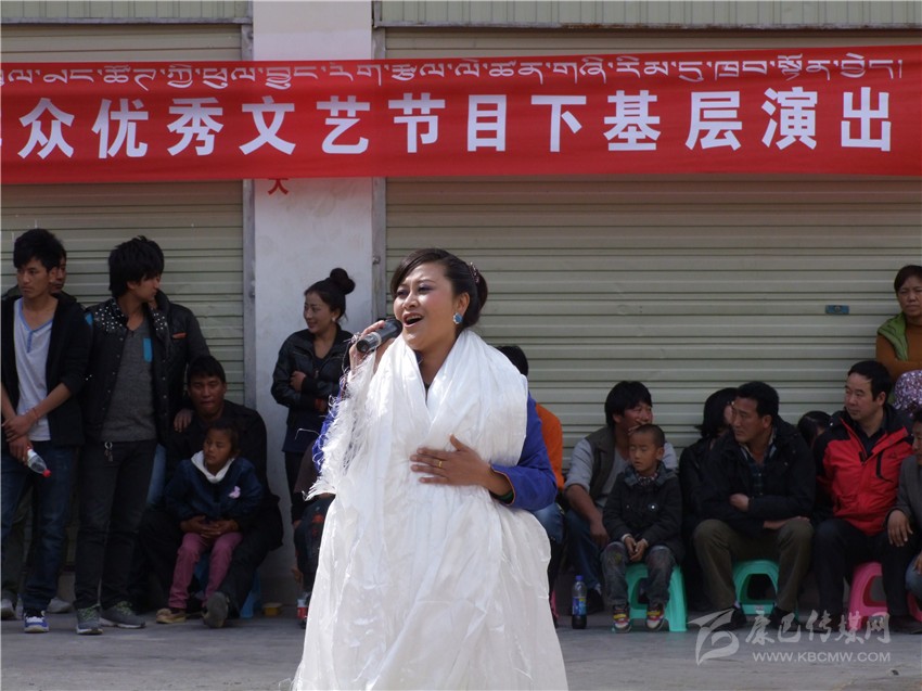 “2013年康巴兒女頌黨恩——甘孜州群眾優(yōu)秀文藝節(jié)目赴基層演出”活動(dòng)相繼在稻城、得榮、鄉(xiāng)城、瀘定展開。3月的稻城,氣候依然寒冷,特別是稻城亞丁機(jī)場,這里海拔高,氣候惡劣,天氣變化莫測,對于格桑志瑪來講,到海拔4410米的地方演唱,是一個(gè)很大的挑戰(zhàn)。盡管如此,她希望通過自己熱情的演唱,能給建設(shè)者送去一絲溫暖。