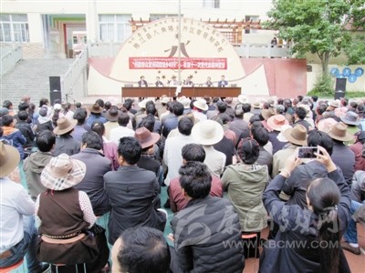 在雅江縣河口鎮(zhèn)希望小學(xué)的廣場上,來自全鎮(zhèn)各村的430名群眾齊集一堂,認(rèn)真聆聽宣講團(tuán)成員其美貢布和劉美翁姆的宣講。