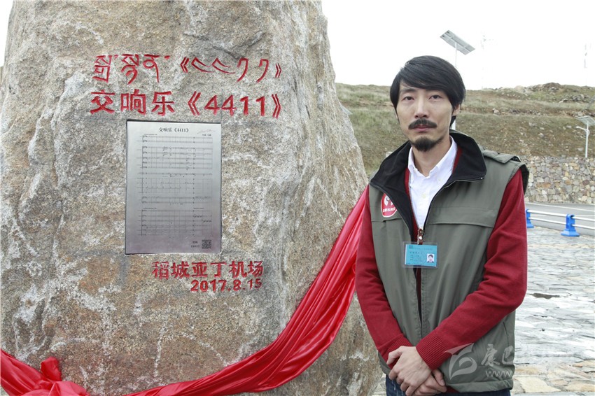 當(dāng)世界海拔最高的民用機(jī)場(chǎng)——稻城亞丁機(jī)場(chǎng)迎來(lái)第一縷陽(yáng)光之時(shí),8月15日,“旅行的聲音——馬爽先生交響樂(lè)作品《4411》創(chuàng)作心路交流會(huì)”在這里成功舉辦。同時(shí),由著名青年作曲家、鋼琴演奏家、原聲音樂(lè)制作人馬爽先生親自作曲的《4411》交響樂(lè)作品樂(lè)譜石刻在這里揭幕。