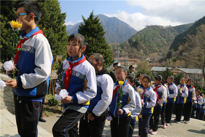 4月4日,瀘定縣在紅軍飛奪瀘定橋紀(jì)念碑前隆重舉行了“不忘初心,緬懷先烈”主題紀(jì)念活動。上午9時,公祭活動正式開始?!读x勇軍進行曲》激昂的音樂聲起,全場齊聲高唱國歌。隨后,全場肅立,全體人員脫帽,向英勇犧牲的烈士們默哀。最后,參加紀(jì)念活動的全體人員懷著崇高的敬意,依次向烈士敬獻鮮花,瞻仰烈士紀(jì)念碑,并在紀(jì)念館工作人員的帶領(lǐng)下參觀了瀘定縣本籍烈士事跡展板。