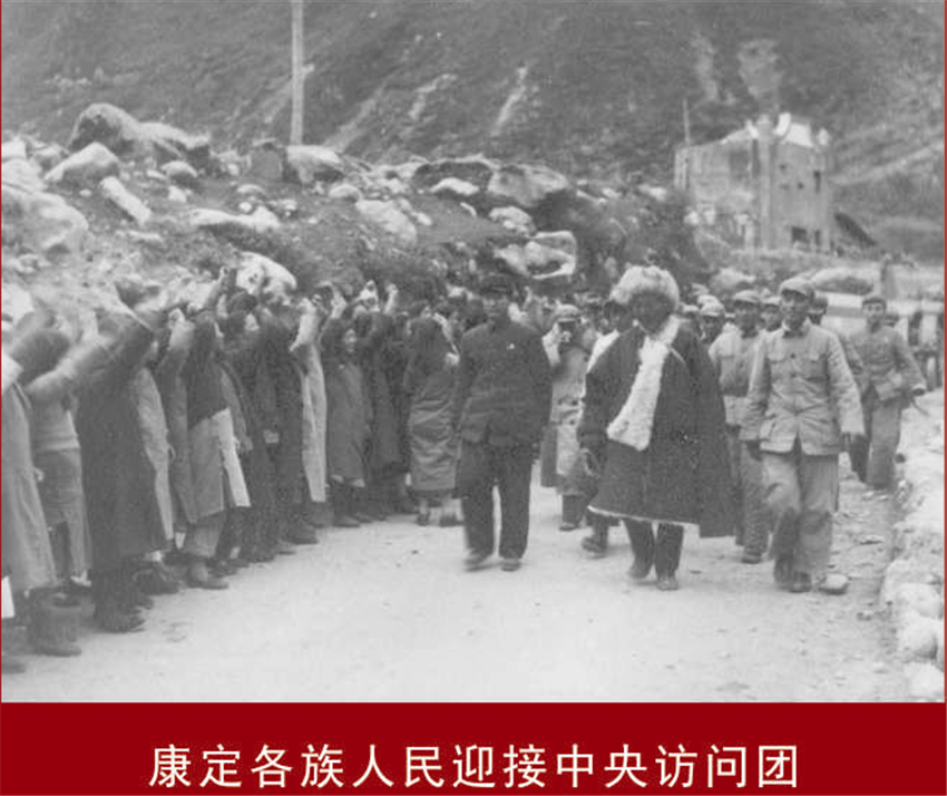 建州初期,康定各族人民迎接中央訪問團。