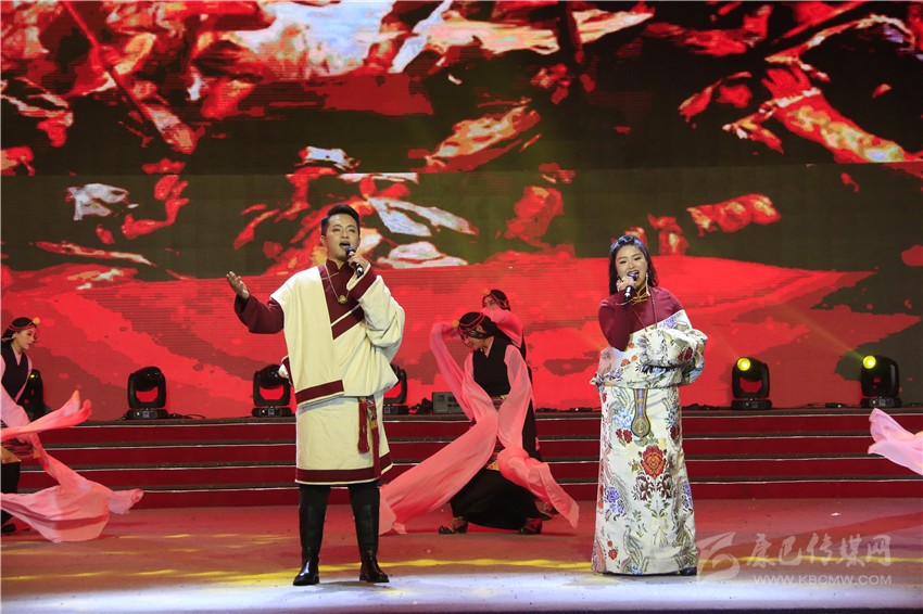 隨后以三個“新”字為主題的篇章,更是彰顯了民族風(fēng)情、甘孜風(fēng)格、時代風(fēng)貌。挖掘民族素材、彰顯民族文化,甘孜歌舞團以格薩爾傳說為“藍(lán)本”,推陳出新表演的《格薩爾仲肯》,讓民族文化熠熠生輝;民族文化需傳承,少年強則甘孜強。德格縣中學(xué)少兒則噶表演的《吉祥頌》,讓人感到后生可畏,贏得陣陣掌聲;富有激情的朗誦、珠聯(lián)璧合的配樂,《甘孜與祖國相約出發(fā)》讓現(xiàn)場觀眾真切地感受到了盛世中華,真情贊美幸福美好的新生活;歌曲大聯(lián)唱《如歌歲月》通過不同時代的代表性歌曲,唱出了甘孜兒女愛祖國、愛家鄉(xiāng),感黨恩、思奮進的真摯情懷;由州歌舞團和爐霍、丹巴、德格、巴塘等縣藝術(shù)團聯(lián)袂上演的《幸福大家庭》,既有漢族歌舞《祝福祖國》、藏族舞蹈《放牧人》、蒙古族舞蹈《送親》、彝族舞蹈《彝家情》、回族舞蹈《花兒》,更是彰顯了民族團結(jié)的大主題,為我州創(chuàng)建全國民族團結(jié)進步示范州擂鼓助威。
