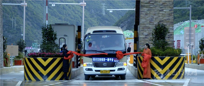 “木雅古碉”建筑矗立兩旁、六出四進(jìn)通道一字排開;巨大熒幕流光溢彩,連接通道窗明幾凈;從無人機航拍畫面可以看到,一面巨大的五星紅旗,已在站頂平層鋪展開來……9月28日上午8時整,一輛客車從升航特大橋駛來,撞破紅綢駛向康定城,旁邊車道上等待多時的車輛依次行進(jìn),雅康高速公路上規(guī)模最大的收費站——康定收費站正式啟用,康定連接線和入城大道通車。“康定連接線建成后將極大提高雅康高速公路進(jìn)入康定城區(qū)車輛通行效率、有效改善康定入城交通的擁堵狀況?!辈貐^(qū)高速公路公司相關(guān)負(fù)責(zé)人如是說。