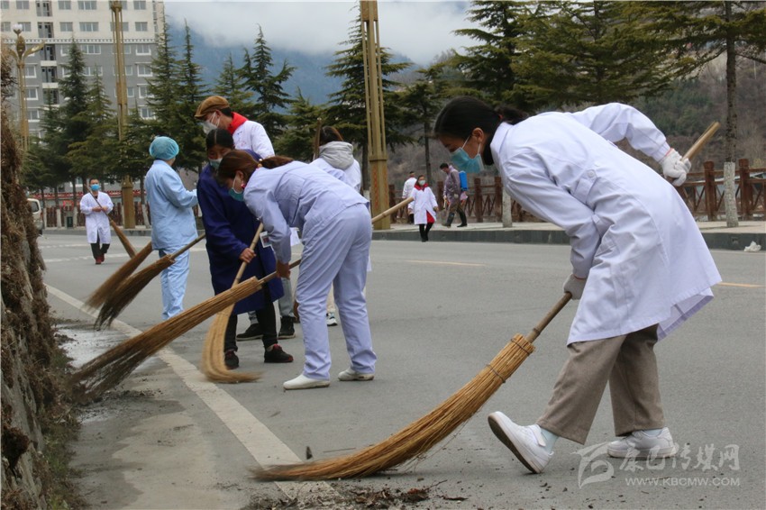當(dāng)日早上,當(dāng)記者乘車駛?cè)肟刀ㄐ鲁菚r,一群“白衣天使”已在路口兩旁,拿著掃帚、簸箕,背著消毒液熱火朝天地開展“周末衛(wèi)生大掃除”活動?!半m然今天是周末,但是為了充分發(fā)揮愛國衛(wèi)生運(yùn)動的統(tǒng)籌協(xié)調(diào)作用和群眾廣泛參與的優(yōu)勢,以環(huán)境衛(wèi)生整治、糞便污水垃圾處理和消除鼠、蟑、蚊、蠅等病媒生物孳生環(huán)境為重點(diǎn),我們從新城入口開始到華西甘孜醫(yī)院二院一路打掃下來,看到煥然一新的街道很有成就感,作為一名醫(yī)護(hù)人員參與這樣的活動感覺非常有意義。”華西甘孜醫(yī)院的醫(yī)護(hù)人員易璽拉姆告訴記者。
