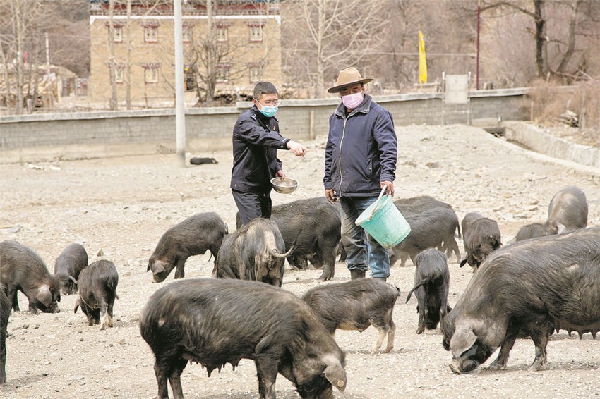 2015年,澤仁瓦吉的生活出現(xiàn)了轉(zhuǎn)機,得知他在村里養(yǎng)過豬,且因家中老人生病治療欠下了不少外債的情況后,鄉(xiāng)領(lǐng)導(dǎo)、包村干部和幫扶責(zé)任人幾次三番找到他,和他談心嘮家常,鼓勵他繼續(xù)養(yǎng)殖藏香豬,并給他帶來了產(chǎn)業(yè)發(fā)展的好政策。