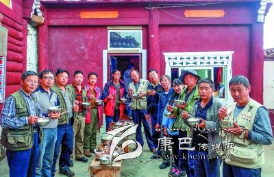 創(chuàng)作采風(fēng)期間,北部高原帶著泥土芬芳的生活深深地陶醉了隊(duì)員們,不知不覺,大家都成了早起晚歸,不辭艱辛的攝影人。每天早上4、5點(diǎn)起床是常事,夜幕四圍才吃晚飯更是習(xí)慣。團(tuán)結(jié)、協(xié)作、樂于助人成為一種自覺的風(fēng)氣:60多歲的趙文光老師退休前曾任過康定縣宗教局和縣政法委領(lǐng)導(dǎo),他成為采風(fēng)隊(duì)最好的藏語翻譯;身板硬朗的他還被稱為“能攆獐子”的人。隊(duì)員辛沂外出拍照的時間最多,走的地方也很多,外出經(jīng)驗(yàn)豐富,他精心準(zhǔn)備的常用藥品熱心幫助了許多人。唐保安老師工作時常到農(nóng)村牧區(qū)調(diào)研,日積月累的基層生活知識成了采風(fēng)中不可多得的向?qū)?。被譽(yù)為攝影后期制作高手的胡庭輝每天義務(wù)為隊(duì)友考貝蓄存卡,講解攝影知識。王明陽、游建中更是身體力行地作表率,吃苦在前,當(dāng)向?qū)Фㄅ臄z點(diǎn),心甘情愿地為隊(duì)友們服務(wù)。在宗塔草原民居接待站,高齡的代奇元老師和游建中不顧外出拍攝的勞累,主動熱心地親自下廚,為隊(duì)友們做出可口的飯菜。13日上午,藍(lán)色中巴在海拔3600公尺的老折山爆胎,州攝協(xié)主席,也是這次帶隊(duì)的郭昌平身先士卒,帶領(lǐng)會修車的胡庭輝、黃元康等不顧高山缺氧,積極幫司機(jī)換輪胎。離開宗塔草原最后一晚,原本安排此行唯一一次早上8點(diǎn)起床,讓隊(duì)員們好好休息一個早上,沒想到不到早上6點(diǎn),全體隊(duì)員無一遺漏地都起床追光逐影拍照去了。來自四川民族學(xué)院的黃元康外出拍照返回,還忙著幫中巴車?yán)顜煾挡料窜噹@顜煾翟趧?chuàng)作采風(fēng)期間也深受感染,這天也沒在床上呆住。他對筆者說:這段時間和你們早晚相處,才知道攝影創(chuàng)作有多辛苦,你們的吃苦耐勞精神不得不讓人佩服。我今早上也睡不著呀,起來擦洗車廂,也想讓你們路途中乘坐得舒服一點(diǎn)……