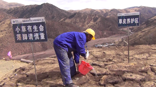 據(jù)介紹,施工前工作人員先將施工區(qū)域的原生草皮進(jìn)行剝離,移至他處并進(jìn)行養(yǎng)護(hù),待施工結(jié)束后,再將剝離的草皮移回原處進(jìn)行回鋪;對(duì)開挖造成地表植被破壞的地段播撒適合高原生長的草籽,直到長出綠草。現(xiàn)場(chǎng)的施工人員介紹說,塔基開挖過程中,先將熟土(表土)、生土分開堆放,并采取隔離(鋪設(shè)棕墊等)、攔擋、覆蓋等措施,回填時(shí)先將生土回填,熟土最后置于表面,以保證植被的恢復(fù)。