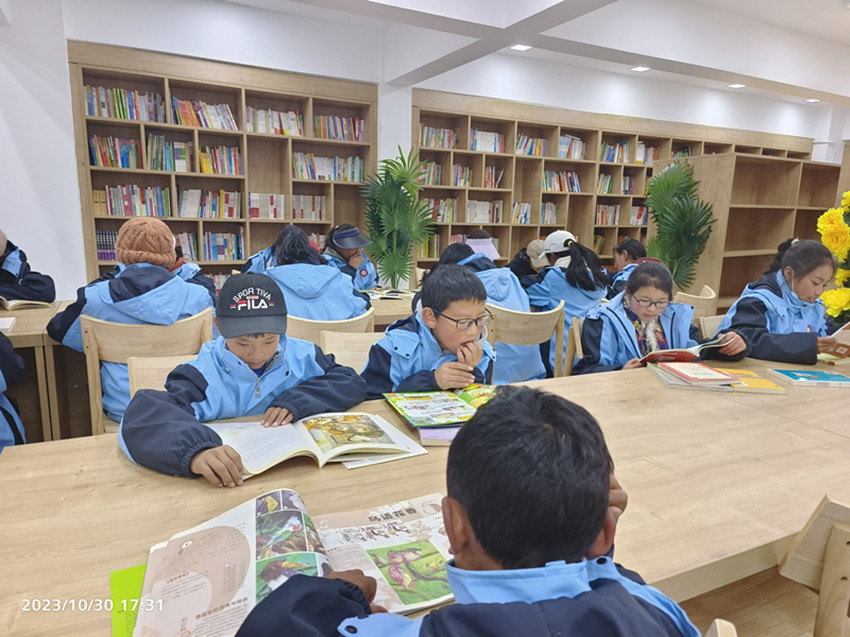 石渠縣學生在新的圖書館看書。