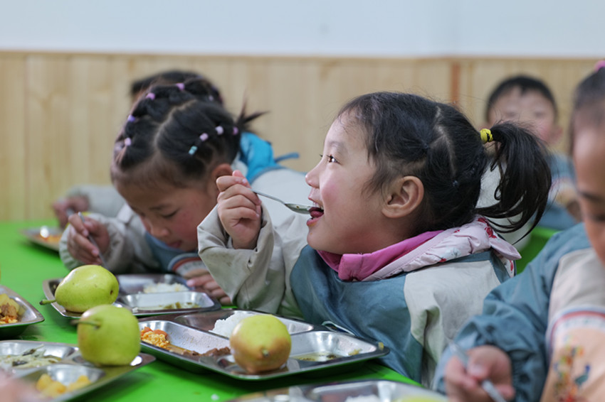 德格縣幼兒園學生正在就餐。