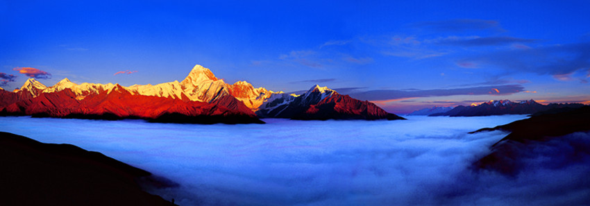 秋末冬初,雪山冰川、壯麗的高山峽谷、蒼莽的森林草甸、遼闊的高原牧場(chǎng),雪山、藏寨、草場(chǎng)、海子、彩林繪成一幅五彩的畫卷,又是那么高遠(yuǎn)純凈。這是時(shí)間的分娩、秋天的醺醉和色彩的狂歡,紛至沓來的游客在大美甘孜,盡享太陽在藍(lán)天白云中噴薄而出那絢麗夢(mèng)幻的美景。