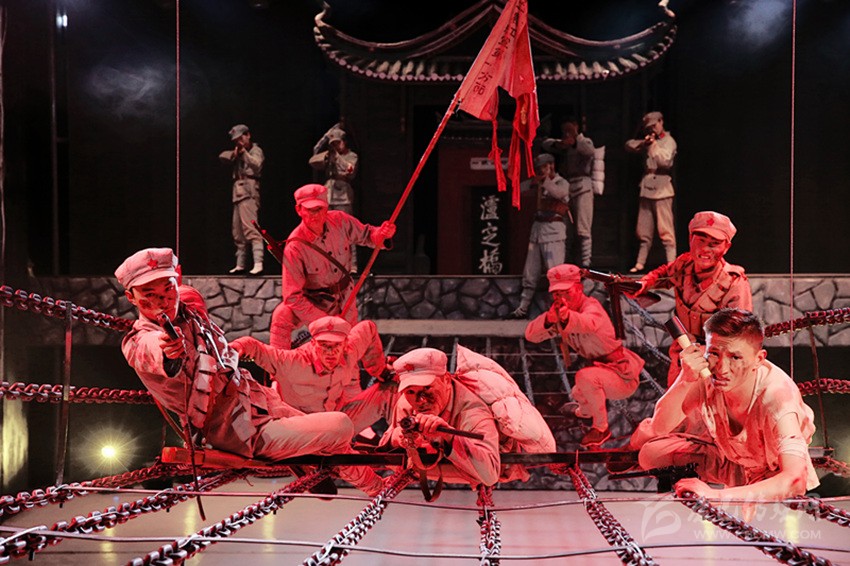 圖為紅軍飛奪瀘定橋紀念館原創(chuàng)實景劇《飛奪瀘定橋》劇照。本網(wǎng)資料庫圖