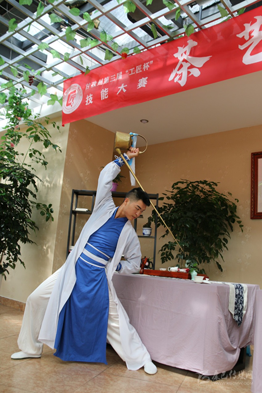 選手正進行茶藝展示。